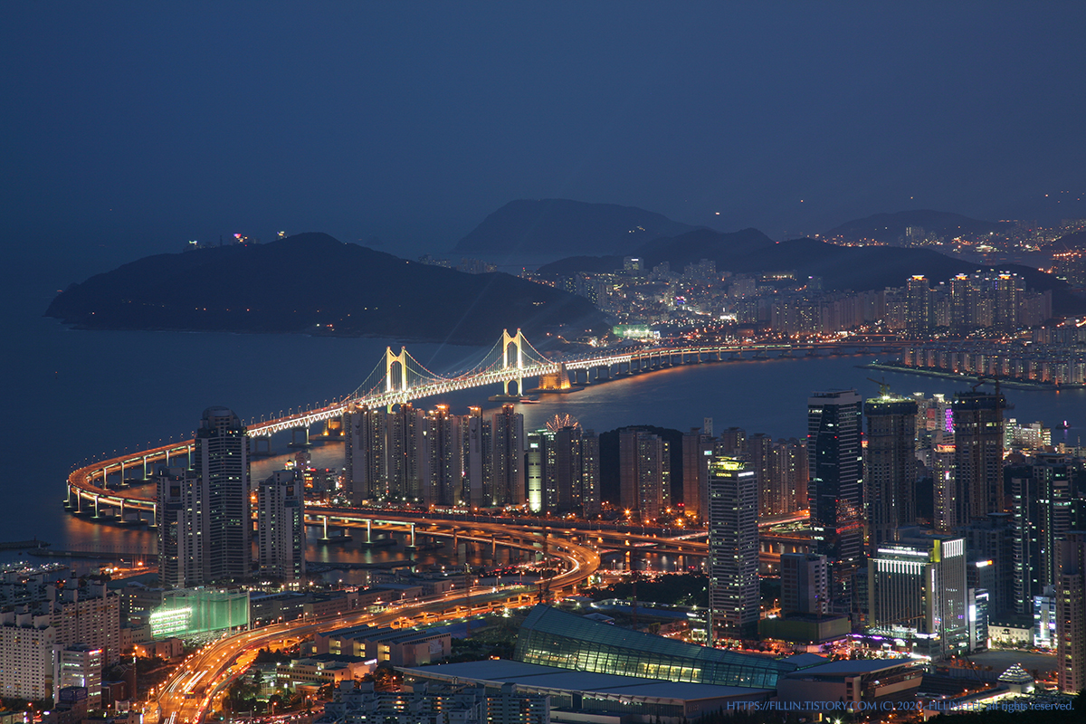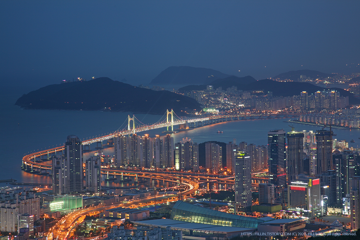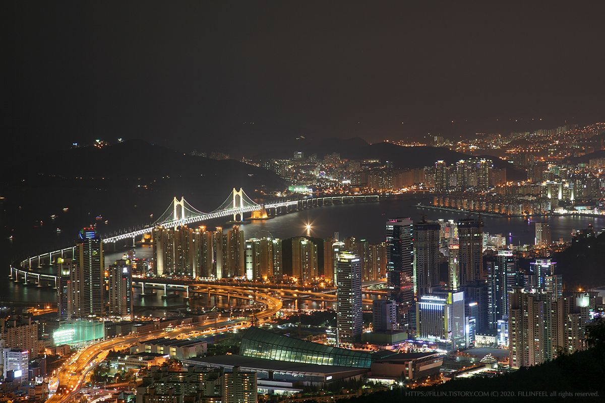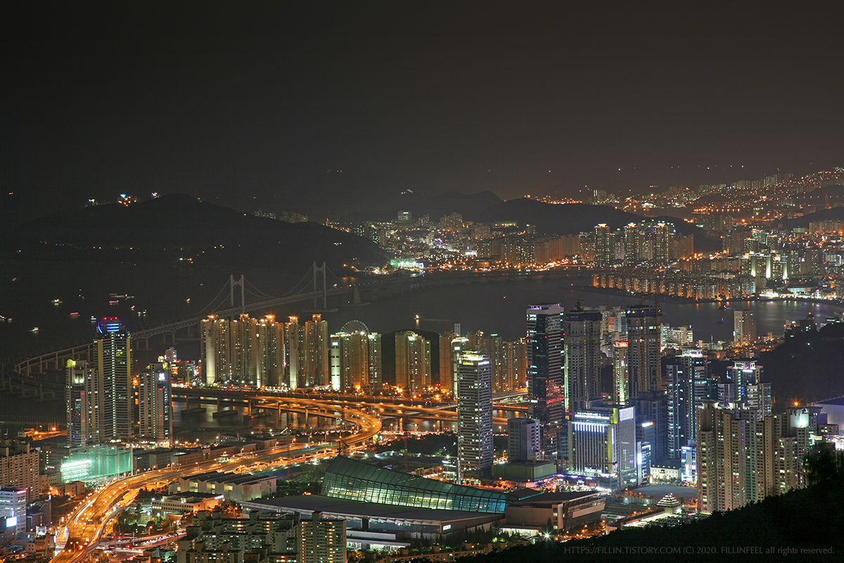 작년에 다녀갔을 때, 정상에 비해 그리 높지 않아 쉽게 오를 수 있고, 시야확보도 괜찮았기 때문이다. 대체로 불꽃 사진은 정면에서 찍어야 모양도 예뻐보이기 때문에 황령산, 금련산 포인트를 생각했지만 그 곳은 하늘의 별따기 만큼 자리잡기가 쉽지 않은 곳이라서 무난한 포인트로 결정했다.
