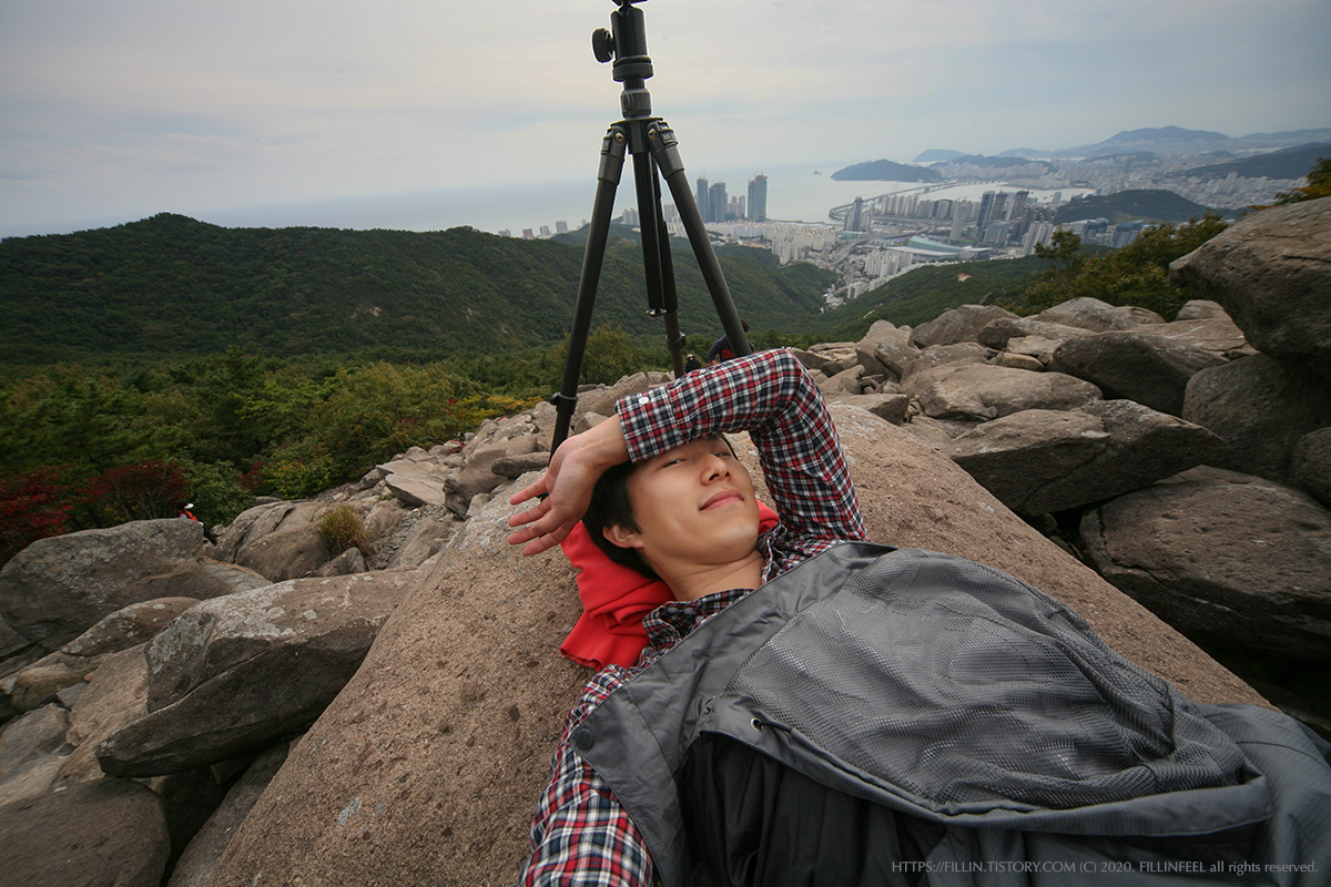 불꽃축제 시작 까지는 무려 5시간 정도가 남았던 시각, 바위 위에서 쿨쿨 잘자는 나. 코로 먼지라도 들어갈 까 싶어 등산복 모자를 떼어다 얼굴을 가리고 잤다. 배경에 나 말고도 몇몇 촬영자들이 자리를 잡고 있는 모습이 보인다. 약 2시 즘 부터 하나 둘 오더니, 3~4시가 되고나서 부터는 개인 및 동호회 사람들이 급속도로 나타났다. 사진속에 보이는 바위 하나 하나에 사람 한 명 한 명 다 있었다고 해도 과언이 아닐 정도로 많은 인파가 몰렸다.