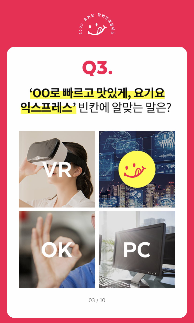 Q3. 'ㅇㅇ로 빠르고 맛있게, 요기요 익스프레스' 빈칸에 알맞은 말은?