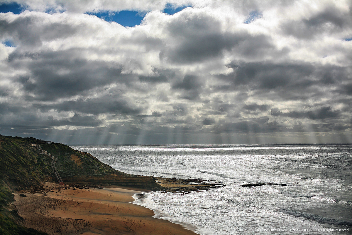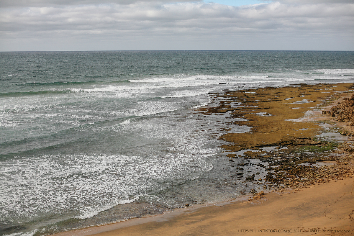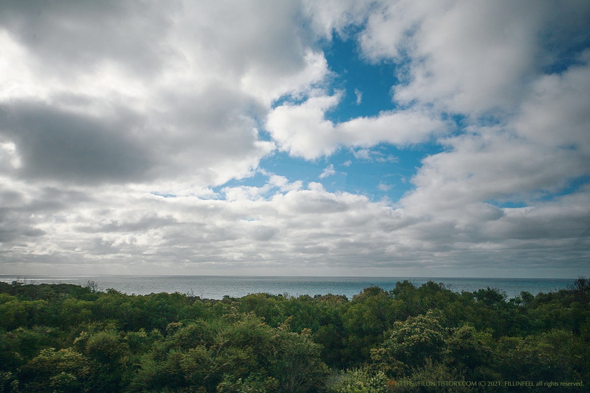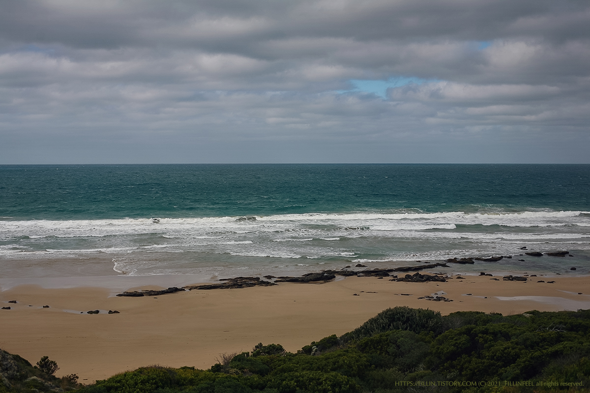 얼마나 갔을까? 바다가 보이기 시작했다. 구름 사이로 파란 하늘도 보이기 시작했다. 하늘이 비치는 바다색은 청록색빛이 나고 구름이 낀 곳은 하얗거나 검게 보이는 바다였다. 하루에 4계절이 있다는 멜번 날씨.. 언제 구름이 걷힐지, 언제 비가 올지 모르는 기대반 걱정반으로 그렇게 이동했다.