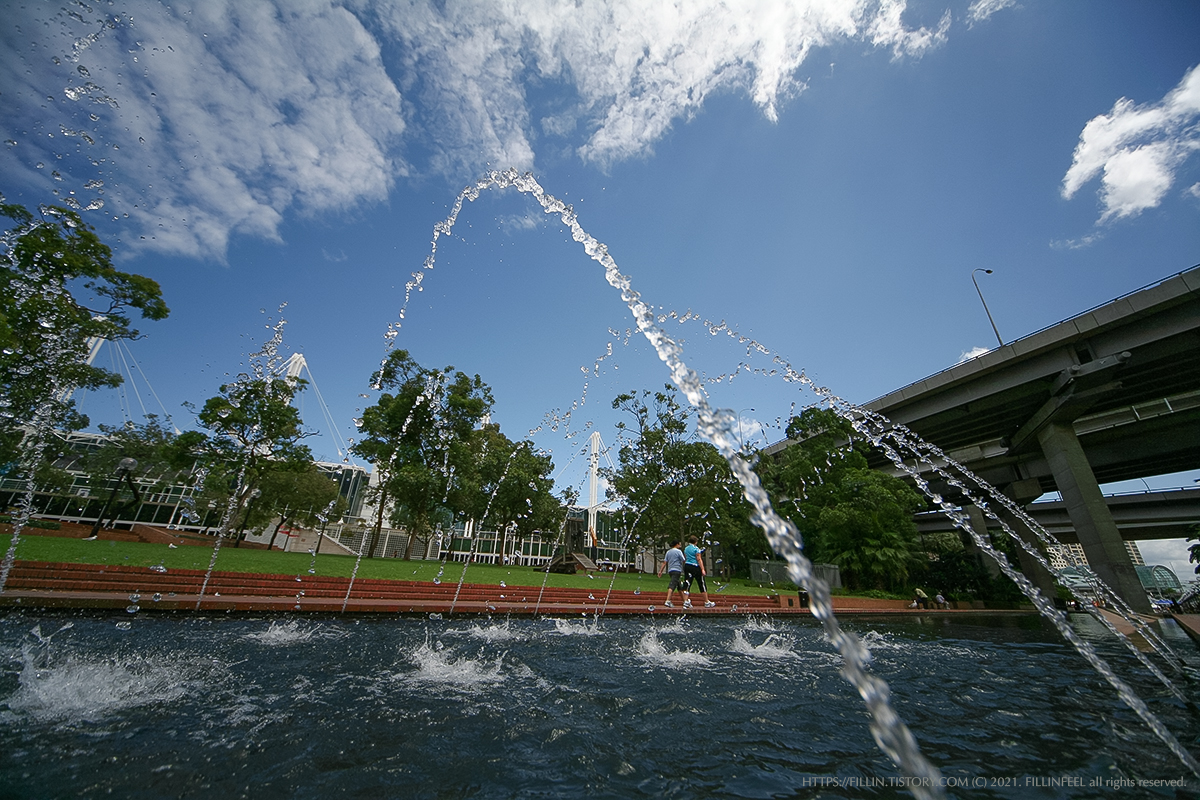 시원한 물줄기가 내 발목을 잡았다. 가만히 서서 물줄기 소리를 듣고 파란 하늘과 하얀 구름, 녹색 잔디, 그리고 산책하는 사람들을 보고 있었다. 여행자의 시선이라 그런지 몰라도 여유가 느껴지는 듯 싶다.