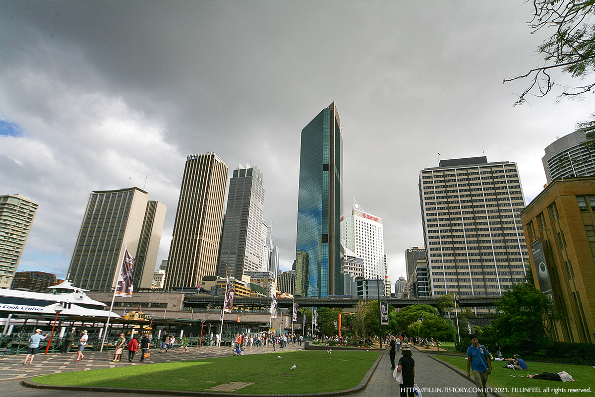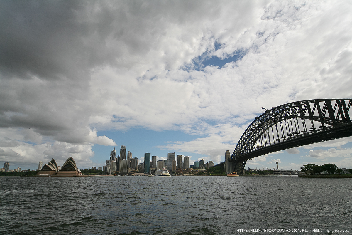 광각 렌즈로 밖에 찍지 못했는데 준망원 정도의 렌즈를 갖고 있으면 오페라 하우스와 시드니 시티를 한 프레임에 가득 담을 수 있을 듯 보였다.