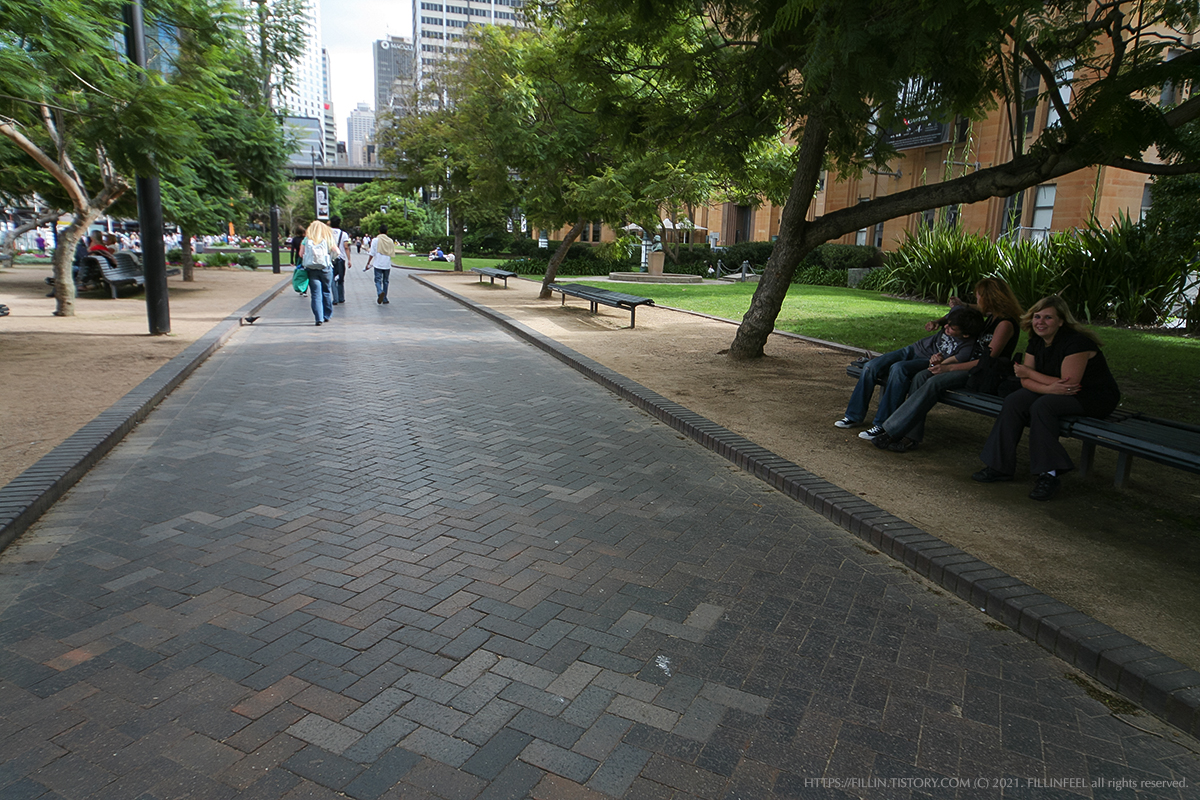 눈 앞에 펼쳐진 곳이 서큘러 키의 모습이다. 브리즈번에서도 그랬지만 시드니에서도 잔디밭에 누워있는 사람들을 자주 보게 된다. 그리고 여기저기 사진찍기 바쁜 관광객도 많고, 그런 사람들을 대상으로 돈을 벌기 위한 거리 공연도 많은 곳이다.