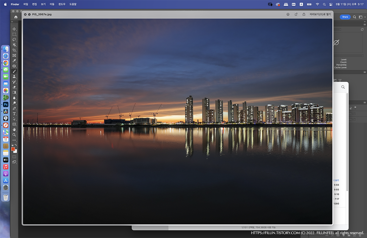 파일을 선택하고 스페이스바를 누르면 큰 창이 뜨기는 하지만 퀵룩 기능이 작동하지 않는 것을 볼 수 있다. 이미지의 크기 또한 파인더의 상세정보에 있는 크기보다도 작게 보여서 거의 쓸모없는 기능이라 해도 무방할 정도라 할 수 있다.