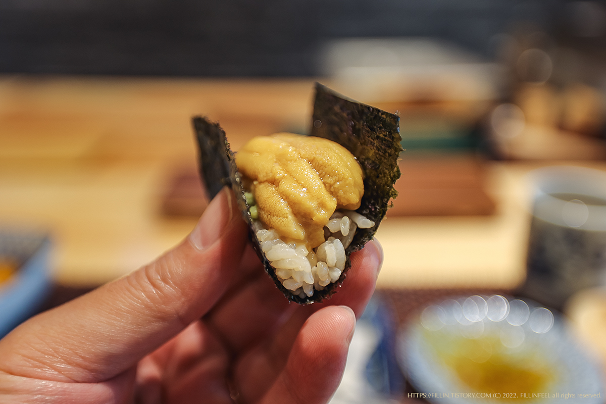 우니를 김에 싼 초밥. 사르르 녹는 맛에 김 향의 조합은 항상 옳다.