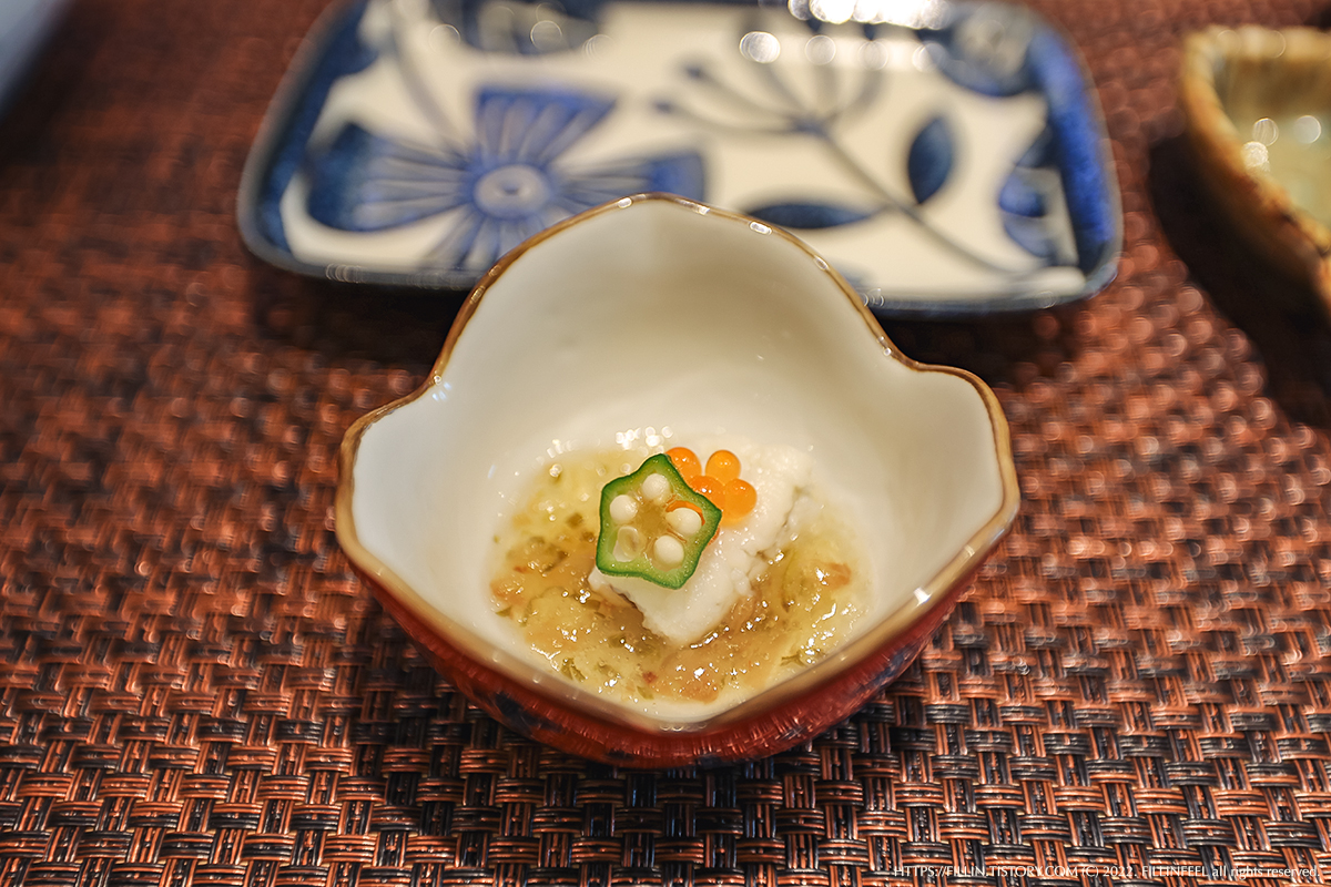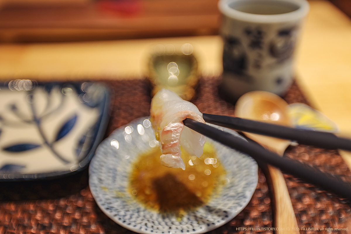 처음 나온 오토시는 고마도후(깨두부)가 나왔다. 소스는 예상되는 맛이었지만 깨두부의 고소함이 예상을 넘어선 맛이었다. 첫 출발이 좋았다.