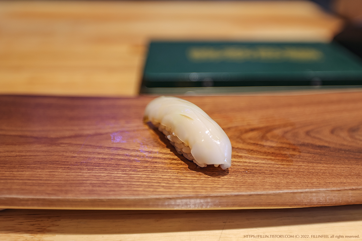 사시미 메뉴가 끝나고 초밥이 나왔다. 갑오징어 초밥은 오징어 초밥의 쫀득함과는 조금 다른 쫀득함이 있었다.