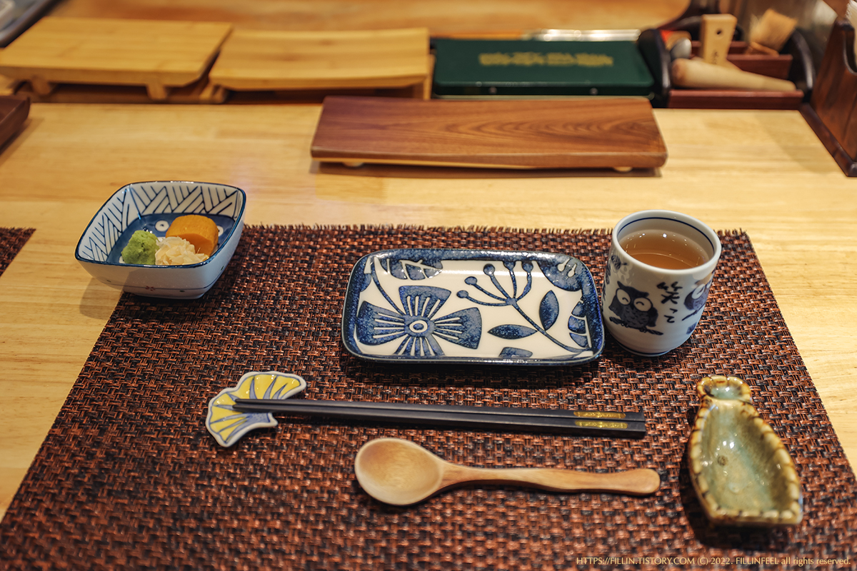 텐메이 다찌석(다이)은 10인 까지 앉을 수 있도록 의자가 놓여 있다. 룸은 3개 정도 있었던 것 같다. 12시 예약으로 다녀왔는데 이 날은 따지석에 3팀, 룸에 1팀이 런치를 즐겼다.