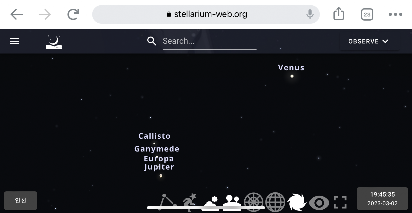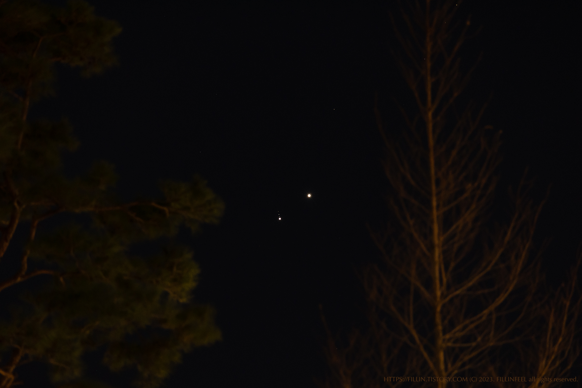 내행성과 외행성이 지구에서 바라봤을 때 가깝게 붙어 있는 모습이 보이는 날이었다. 사실 천체 관련 정보는 Star Walk나 Sky Tonight 등 천체 관련 앱을 통해 소식을 접하고 있다. 3월 2일도 가장 근접한 날이라는 정보를 얻고 스케줄에 알람까지 해서 잊지 않고 찾아본 것이다. 제임스웹 우주 망원경이 뽑아내는 이미지를 보며 심우주에 대한 신비로움도 느끼고 있지만 태양계 내 행성들의 이벤트를 실시간으로 바라보면 경이로움과 아름다움을 느낀다.