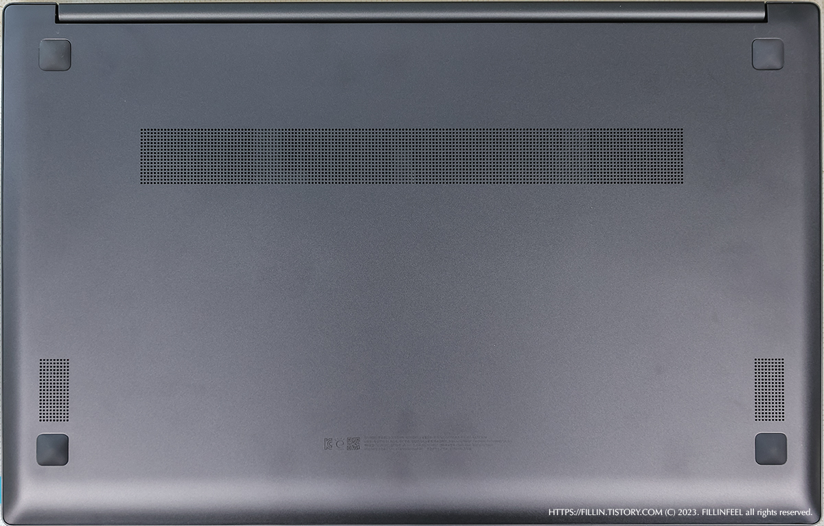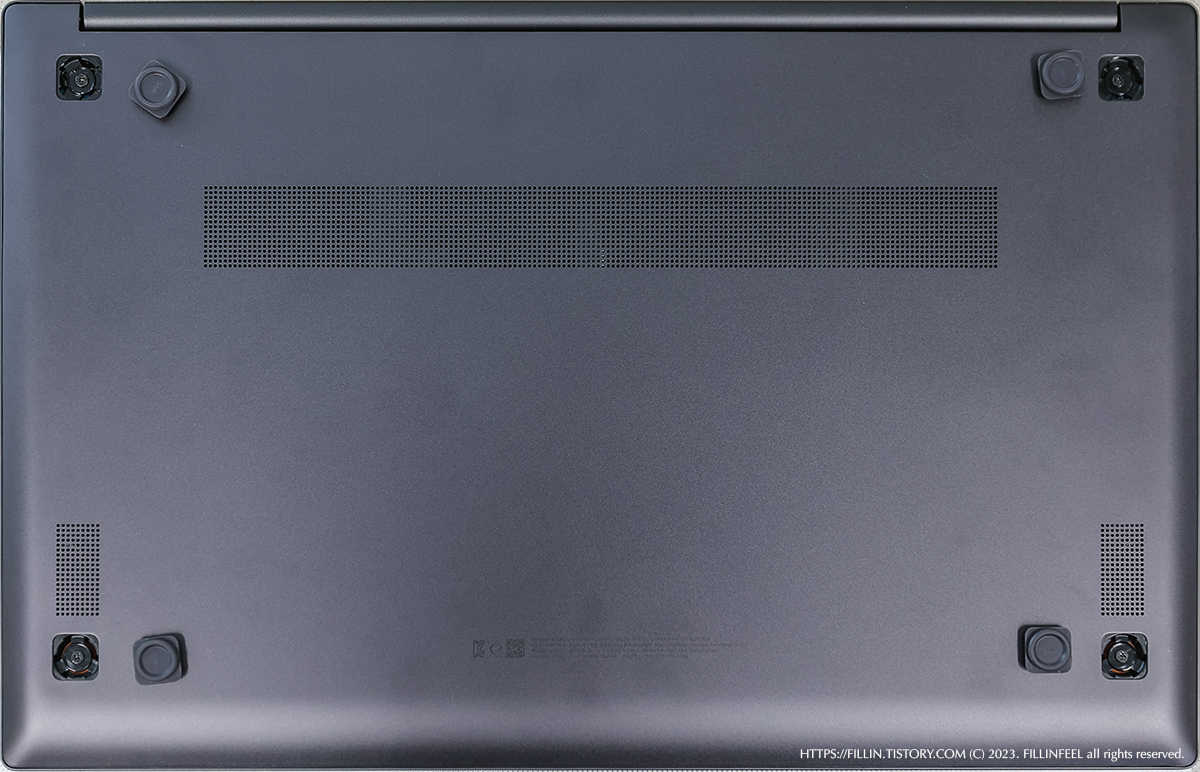 갤럭시 북 하판 커버의 모습이다. 동그라미 친 부분을 확인할 필요가 있다.