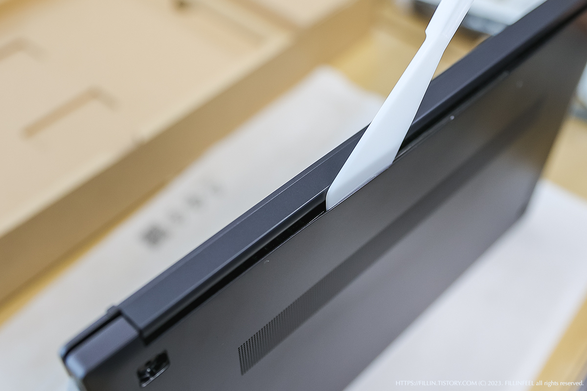 우선 많은 힘을 주지 않아도 휠 것 같이 커버 자체가 너무 얇다. 무게와 원가의 절감이 그 목적이었겠지만 얇아도 너무 얇다. 무지성으로 커버를 열다가 결합 부분이 쉽게 분리되지 않으면 커버가 휠 것 같은 그런 상태를 보인다.