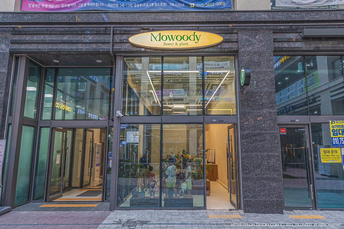 오픈 당일 꽃집에 방문했다. 꽃집 모우디(Mowoody)는 닥터몰 1층에 위치하고 있다. 모우디(Mowoody)는 more + woody의 합성어로 더 울창한 숲을 의미한다고 한다.