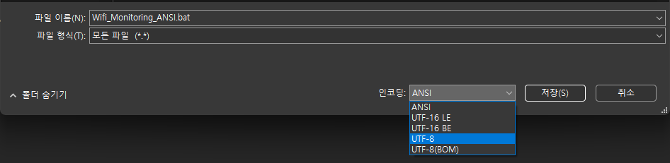 아래 파일에는 ANSI, UTF-8 두 가지 버전의 배치파일이 있습니다.