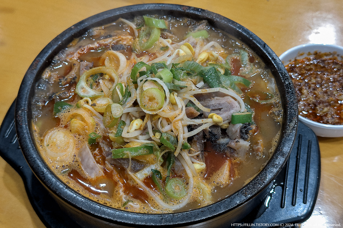 폰으로 찍는 바람에 이 맛을 다 담아내지 못한 게 한이다. 사진은 구려도 소문내고 싶을 만큼 확실한 맛집이다. 한 번도 간 적 없는 사람은 있을지언정 한 번만 간 사람은 없을 거란 게 확실한 곳이다. 점심 시간에 주변 테이블을 보면 소주 한 병 까서 해장술을 즐기는 아저씨들이 보인다. 이분들이 보인다면 게임 끝, 여긴 찐이라는 증거다.